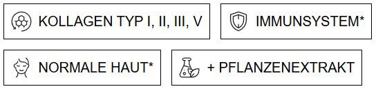 Esser: Hydrolysiertes Rinderkollagen, Kapselhülle [Rindergelatine, gereinigtes Wasser, Farbstoffe (Eisenoxide und Eisenhydroxide)], Glucosaminsulfat Kaliumchlorid (aus Krustentieren)/u>), Methylsulfonylmethan (MSM), Calciumcarbonat, Magnesiumoxid, L-Ascorbinsäure, Trennmittel (Magnesiumsalze von Speisefettsäuren), Chondroitinsulfat, Kurkuma (Curcuma longa L.) 45:1-Wurzelextrakt, Natriumhyaluronat, DL-Alpha-Tocopherylacetatpulver, schwarzer Pfeffer (Piper Nigrum) 50:1-Fruchtextrakt, Chrompicolinat.